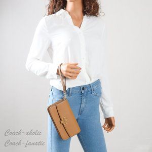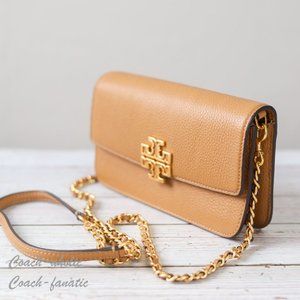 NWT Tory Burch Britten Chain Wallet with Wristlet Leather Crossbody in Tiramisu