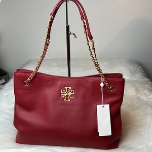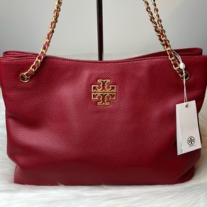 NWT Tory Burch Britton Triple Compartment Redstone Pebbled Leather Tote