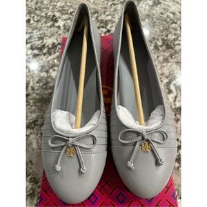 NWT Tory Burch Cap-Toe Quilted Ballet Flats. Almond toe. Slips on. Leather upper. Color is Bay Gray.