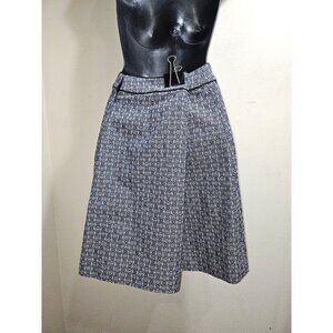 Chaumont Skirt A Line Mini Jacquard Ivory Midnight Navy Gemini Size 4 Introducing the Chaumont Logo Print Tweed A-line Mini Skirt by TORY BURCH, where classic heritage style meets contemporary design. This skirt features a polished blend of 58% cotton and 42% polyester, and showcases a modern edge with its glossy piping and front zip that runs up from the hem. The heritage chain-patterned jacquard and side zip closure, along with front zip-welt pockets, add functional style to this chic A-line piece. Care instructions recommend dry cleaning to maintain its elegant silhouette in a sophisticated blue hue. Tuck in your favorite tee for a more laid-back vibe!