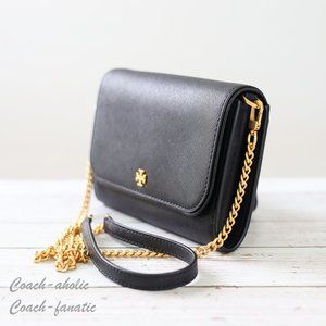 NWT Tory Burch Emerson Chain Wallet Leather Crossbody in Black
