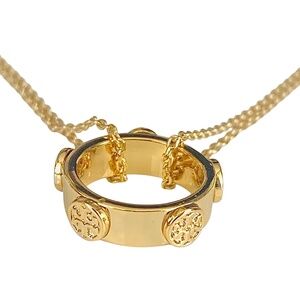 NWT Tory Burch Gold Miller Stud Circle Pendant Necklace $198