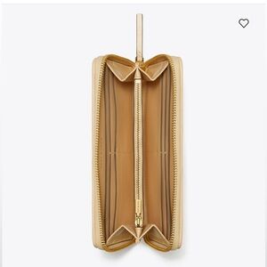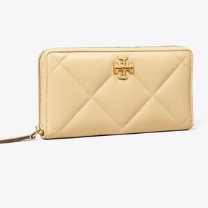 Elevate your style with the Tory Burch Kira Diamond Quilt Zip Continental Wallet Perfect for organizing your essentials with elegance. Soft Napa leather with blown up Diamond stitching. Embellished with Double T logo hardware on front. Designed with multiple pockets and a long shape so that bills fit without being folded. Top zip closure. Interior: 2 Bill pockets/ 8 card pockets/ 1center zipper divider. Color: vanilla soft serve. Please note my pics are showing a little lighter. Catalog pic is true to color. 4” H x 7.6 L. Beautiful wallet. Open to offers. Quick Ship.