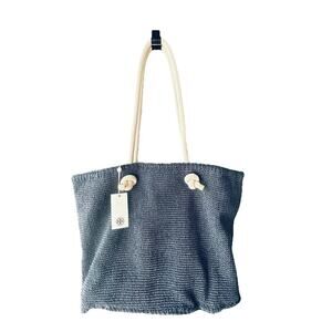 NWT Tory Burch Knotted Whale Tote Navy Blue Handbag Beach Pool Vacation Bag Rare