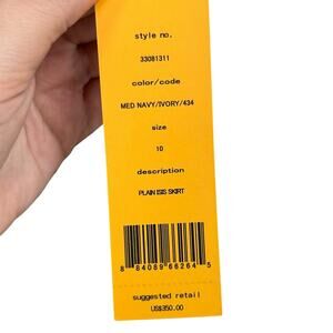 NWT Tory Burch Medium Navy Ivory Acrylic Blend Tweed Skirt Womens 10