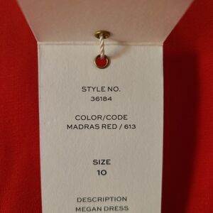 NWT Tory Burch Megan A Line Madras Red Wool Blend Silk Trim Midi Dress size 10