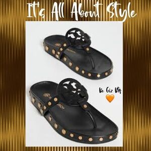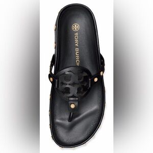 NWT Authentic Tory Burch Miller Cloud Gold Coin Thong Sandals Perfect Black Size 11 M