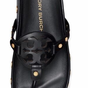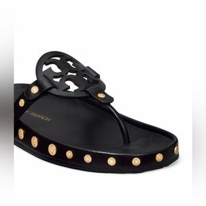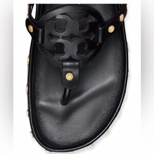 NWT Authentic Tory Burch Miller Cloud Gold Coin Thong Sandals Perfect Black Size 11 M