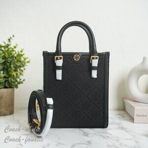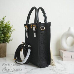 NWT Tory Burch Mini T Monogram North/South Crossbody Tote in Black