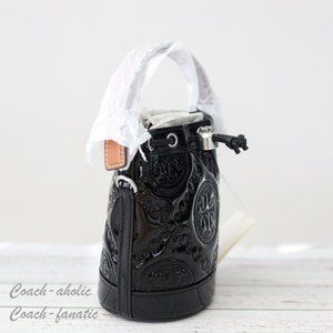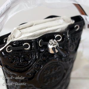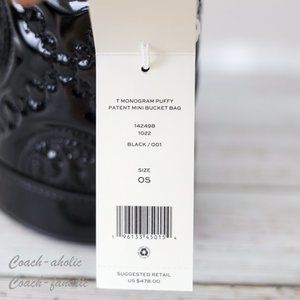 NWT Tory Burch Mini T Monogram Puffy Patent Leather Bucket Bag Crossbody Black