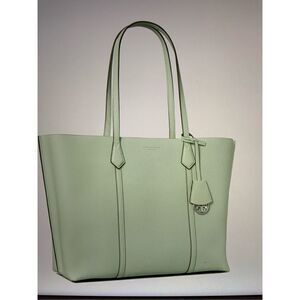 NWT Tory Burch Perry Triple Compartment Tote. Fits a laptop up to 13”. Leather. Shoulder straps with 1.2” drop. One center zipper pocket, three interior slit pockets. Hanging Charm. Dust bag included. Color: Meadow Mist. Dimensions: 11.4x14.2x5.3.