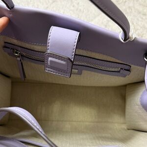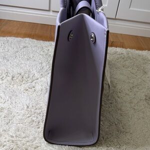 New with tags! Absolutely gorgeous bag! Chic Tory Burch tote in a soft lavender hue. Features iconic logo and roomy interior. Perfect for daily elegance.