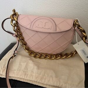 NWT Tory Burch Quilted Logo Leather Crescent Handbag