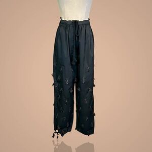 NWT Tory Burch ‘Raffia Poplin Drawstring Pant’ in Black Size 6