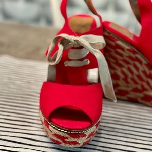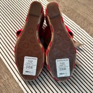 NWT Tory Burch Red Canvas Espadrille Wedges