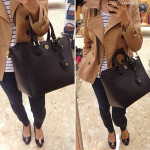 NWT Tory Burch Robinson Large Leather Tote BROWN