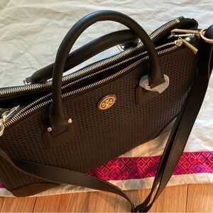 NWT Tory Burch Robinson Perforated Double Zip LARGE tote. Black.