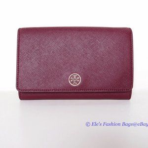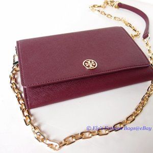 ❤️ NWT Tory Burch Robinson WOC Wallet On a Chain Leather Crossbody Shiraz Red