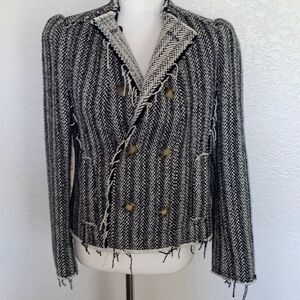 NWT Tory Burch Sammy Herringbone Tweed Raw Edge Double Breast Jacket Sz 8