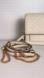 Chic ivory crossbody with embossed logo design. Features gold-tone chain strap. Perfect for versatile styling.