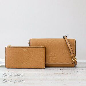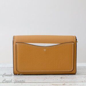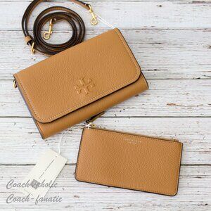NWT Tory Burch Thea Small Pebble Leather Flat Wallet Crossbody in Tiramisu