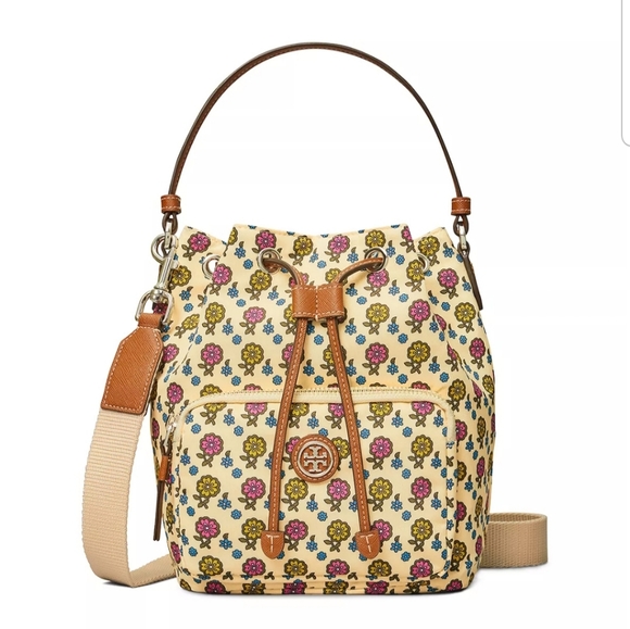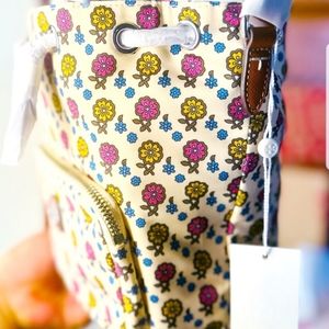 🎀NWT Tory Burch Virginia Printed Mini Bucket Bag.Color: Ivory Floral Daisy💖