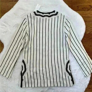 NWT Tory Burch Women's Size 10 Black Ivory Filipa Rayon Slub Stripe Tory Tunic