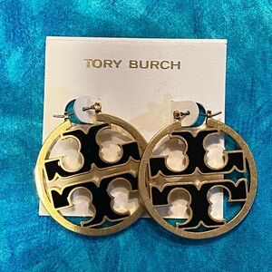 NWT Tory Burch gold, and black hoop, earrings, pierced, 1.5“ each, Tory dust bag