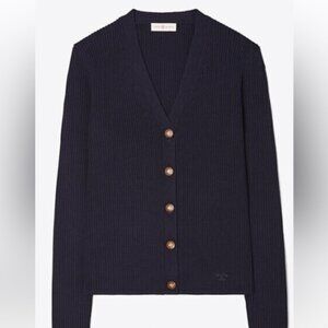 NWT Tory Burch ribbed Merino Wool cardigan in Navy size Medium