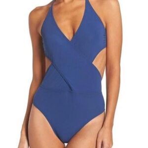 NWT Tory Burch Solid Wrap-front One-piece Swimsuit In Capri Blue size Medium