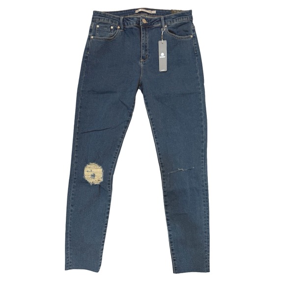 NWT Tractr Denim Diane Mid Rise Slim Jeans Distressed Ripped Raw Hem