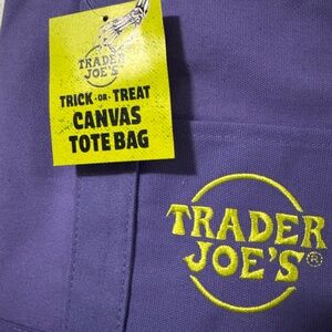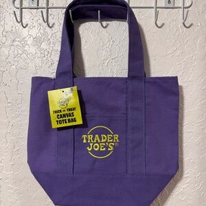 NWT Trader Joes Mini Canvas Tote Bag Halloween Limited Edition Purple & Green