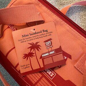 Brand new Trader Joe’s mini insulated tote in a soft peach and pink color combination. Designed to keep snacks, lunches, or drinks cool, this reusable cooler bag is perfect for daily use, picnics, or travel. Eco-friendly, compact, and exclusive to Trader Joe’s.