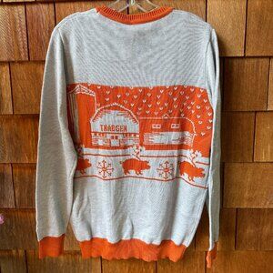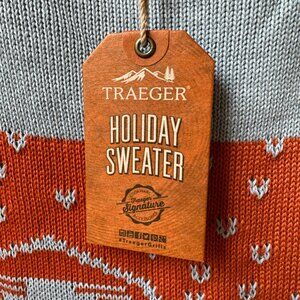 Brand new with tags and never worn! The sought after Traeger Gray and Pumpkin Long Sleeve Holiday Sweater with Farm Scene in Men's XXL - Wrap yourself in smokin’ style with the Traeger Holiday Sweater. Featuring the signature Traeger barn where it all started, and a cha-cha line of pot-bellied pigs, you’ll be the talk of the party.