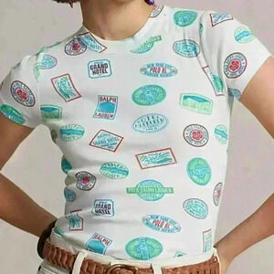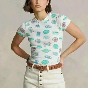 NWT Travel Motif Ribbed Cotton Tee by Polo Ralph Lauren Sz XXS