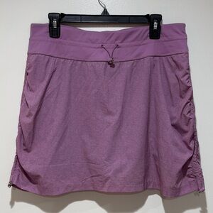 travis mathew skort xl dune grass heather dusty lavender golf tennis activewear sport preppy built in shorts side pocket high waist ruching stretchy athletic courtwear summer skirt performance breathable comfy stylish