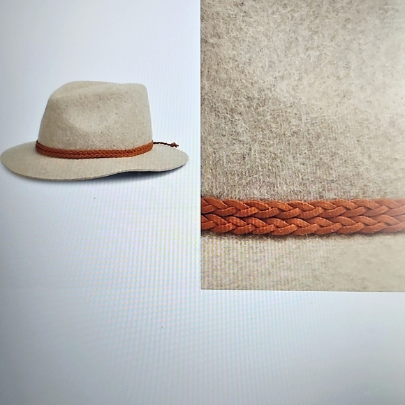 NWT Treasure & Bond Double -Braid Wool Felt Fedora Adjustable Hat Beige One Size