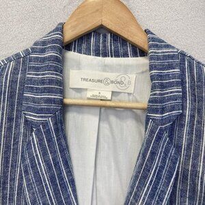 NWT Treasure & Bond Linen Blend Double Breasted Blazer Mens Small Blue Striped