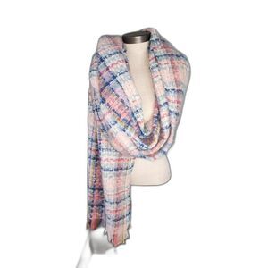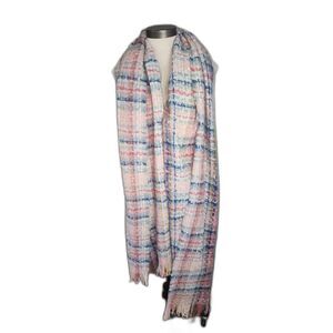 NWT Treasure & Bond Ivory Plaid Combo Fringe Blanket Scarf. This scarf is super soft and oversized and is white, pink and blue plaid design. Originally $49.