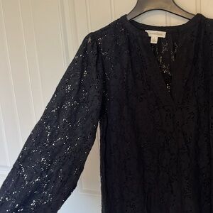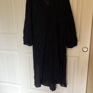 NWT Treasure Bond Lace Lined Peasant Midi Dress Black V-Neck Long Sleeve Small