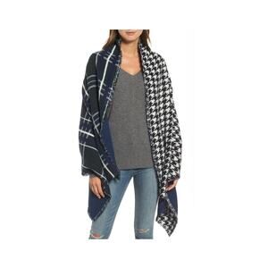 NWT Treasure & Bond Remix Navy/Maroon Plaid 3-Way Blanket Wrap - One Size