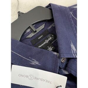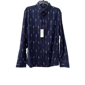 NWT Treasure & Bond Size L Navy White IKAT Print Long Sleeve Button-Up Shirt