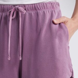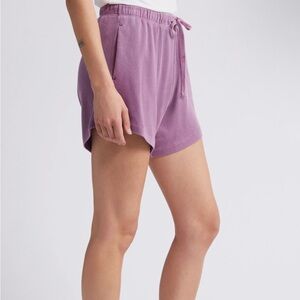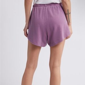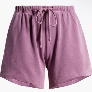 Lounge all day long in these comfortable French-terry shorts boasting a light wash and an adjustable drawstring waist.