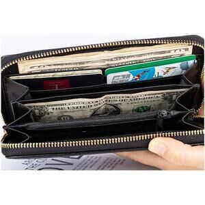 NWT Treeable Bohemian Beaded Leather Zipper Women's Wallet Blue Flower Long