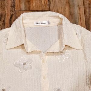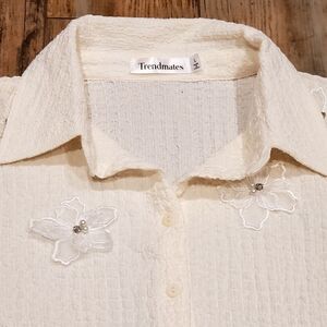 🔸️NWT Trendmates Ivory Crinkle Floral Adjustable Long Sleeve Top Large