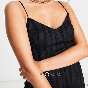 NWT! Trendyol mini cami dress black textured stripe 10 holiday occasion party