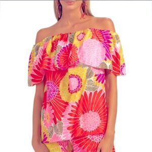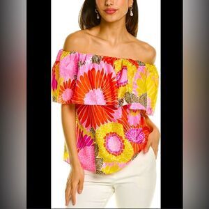 NWT- Trina Turk 'Agua Caliente' Off-The-Shoulder Floral Silk Top;Size L + shorts