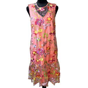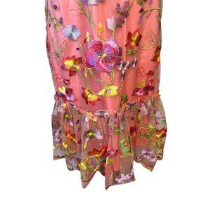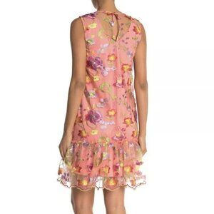 NWT Trina Turk Babs Embroidered Mesh Floral Print Peplum Sleeveless Dress Size 0