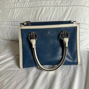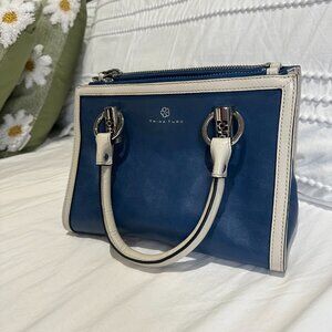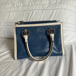 New with tags, gorgeous handbag Bag is fully lined. Does not include adjustable strap. Silver accents. Two zippered side pockets and middle section with magnetic snap closure.