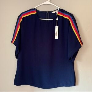Contemporary and colorful, Trina Turk draws inspiration from California's multicultural mix. Isla Top in ink with contrast striping and side slits at hem